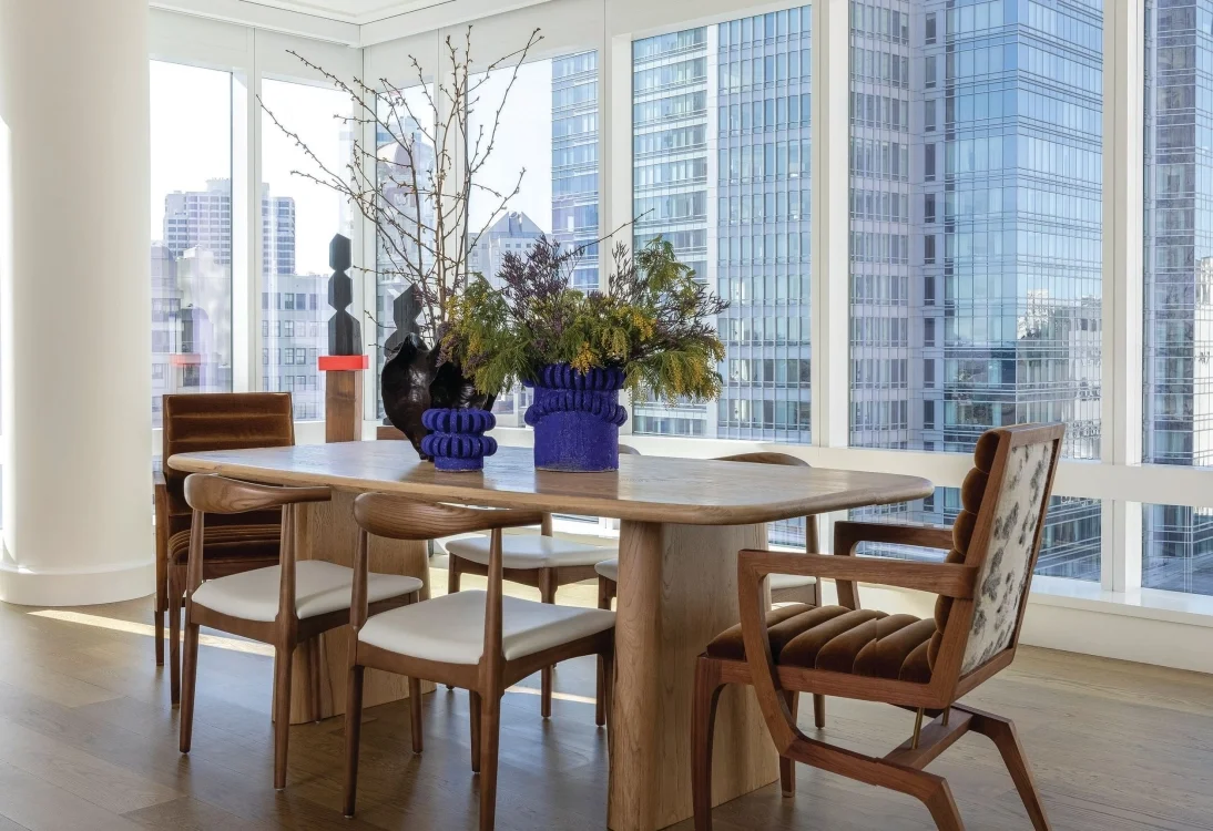 Artful interiors like these also leave plenty of room for a client's art collection, creating rooms that meet its energy with sculptural furniture, layered materials, and vintage pieces that are just as collectible.